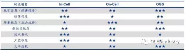2、In-Cell本身工藝難度最高,應用于OLED尚需更多技術需要突破,此外主導In-Cell技術的蘋果公司此前一直致力于研究TFT-LCD的應用,對OLED涉及較少。